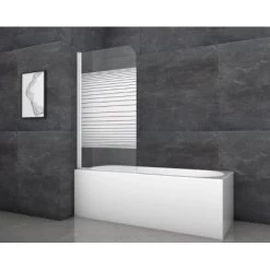 Vorbei sind die Zeiten, als der nasse Duschvorhang am Körper klebte – die 1-flügelige Aurlane Badewannenfaltwand White Stripes 1 bleibt auf Distanz und sorgt für ein entspanntes Duscherlebnis. Durch die transparente Glasscheibe kommt viel Licht in Ihre Badewanne, während der mittige Dekordruck optischen Schutz bietet. Zur leichten Reinigung ist die Badewannenfaltwand schwenkbar. Mit dem mitgelieferten Montageset ist die Anbringung an der Wand einfach vorzunehmen. Die Maße der Duschwand betragen (B x H x T): 80 cm x 140 cm x 5 cm.