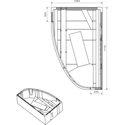 Maße Badewannenträger (H x B x T): 60 cm x 171,5 cm x 106,3 cm