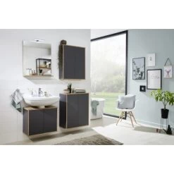 Fackelmann Doppel-Hängeschrank 60 Cm Finn Anthrazit-Ast-Eiche
