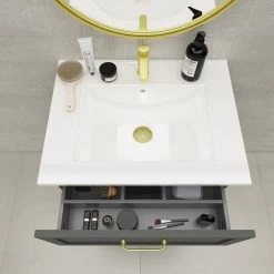 Randal Waschbeckenunterschrank Drome 2 Schubladen 60 Cm Grau Griffe Golden