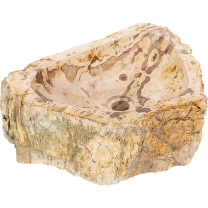 Unser Aufsatzwaschbecken ist aus ganz besonderem Holz gemeißelt. Vor Millionen Jahren gewachsen und von den Elementen versteinert und verschönert, ist es nicht nur hübsch anzusehen, sondern auch robust genug, um dir in deinem Bad lange Freude zu bereiten. Mit seinen kompakten Maßen von ca. 40 cm x 30 cm x 15 cm eignet es sich auch für kleinere Waschtische und Gäste-WCs. Bis auf die polierte Innenseite ist jedes Stück naturbelassen und ein Unikat in Form und Maserung. Um diese Schönheit zu erhalten, solltest du bei der Reinigung auf aggressive Chemikalien und Stahlschwämme verzichten.