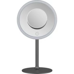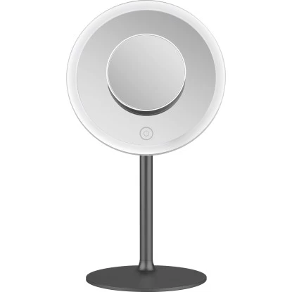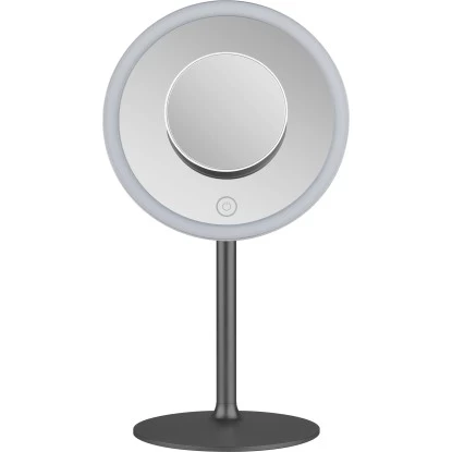 Wiederaufladbarer Kosmetik Standspiegel mit Touchschalter. Aufladung mit USB Kabel möglich. Mit 3 verschiedenen dimmbaren Farbtemperaturen, welche ein Tages-, Abend- oder Innenraumlicht simulieren und somit besonders für den kosmetischen Einsatz geeignet sind. Dank zusätzlichem leistungsstarken 10-fach Vergrößerungsspiegel lassen sich Hautpflegeprodukte oder Augen Make-Up ideal auftragen. Gleichzeitig sorgt die 360° Grad Drehung des großen Spiegels für flexible Sichtwinkel. Beide Spiegel lassen sich magnetisch abnehmen und anbringen.