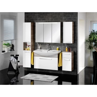 Die hochwertige Badmöbelserie A-Vero eignet sich für geräumige Badezimmer, aber auch für kleine Badlösungen und das Gäste-WC. A-Vero zeichnet sich durch die reliefartige Oberfläche beim Graueiche-Dekor aus.