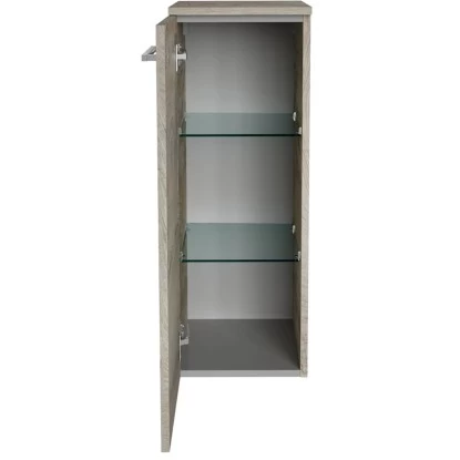 Be free – my style! Aus der Kombination dieser fröhlichen Lebenseinstellung generiert sich der Name des neuen Badmöbel-Programms von Fackelmann. Auch der Midischrank B.Style mit links angeschlagener Tür deckt mit fünf ansprechenden Dekorkombinationen viele Wünsche der modernen Badgestaltung ab. Als Zusatzschrank ist er mit Glasablageböden ausgestattet und bietet genügend Stauraum für Handtücher, Kosmetik und Zubehör. Besonders edel: der Midischrank kann mit einer edlen Abdeckplatte in Korpusfarbe aufwarten.