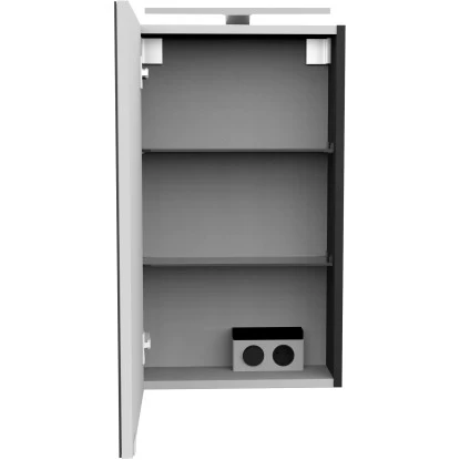 Immer mehr fungiert das Gästebad als Visitenkarte des persönlichen Einrichtungsstils. Der Fackelmann Spiegelschrank ist Teil der Small Bathroom Collection (SBC), mit der Fackelmann sein bewährtes Konzept für die Vielfalt und das elegante Ambiente im Gästebad neu überdacht und optimiert hat. Der hängend montierte Spiegelschrank begeistert mit zahlreichen ansprechenden Korpus- und Frontvarianten, die von Weiß über Anthrazit bis hin zu diversen Holzdekoren reichen. Die Beleuchtung des Spiegelschranks mit eingebauter LED-Aufsatzleuchte steuert eine Elektrobox mit Schalter und Steckdose. Die Tür links lässt sich ohne Griff öffnen. Im Inneren ist der Spiegelschrank mit 2 Glasablageböden ausgestattet, die 3 Fächer ergeben, welche viel Stauraum für alle notwendigen Badutensilien gewähren.