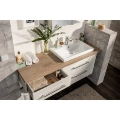 Darüber hinaus weisen alle Fackelmann-Schränke eine hochwertig verarbeitete Dickkante mit wasserfester, quellsicherer Verleimung auf und sind mit gedämpften Scharnieren und Schubladen mit Soft-Close-System für einen sanften Anschlag versehen. Korpusse und Fronten sind aus feuchtigkeitsresistenten Materialien gefertigt, stabil und pflegeleicht.