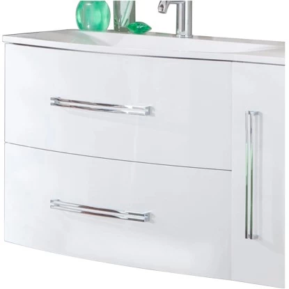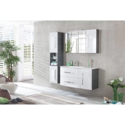 Melaminbeschichtung: Dank der Melaminharzbeschichtung sind Ihre Badmöbel feuchtigkeitsbeständig und pflegeleicht.