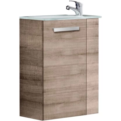 – Waschbeckenunterschrank mit 1 Tür links (inkl. Metallgriff) und 1 Einlegeboden