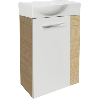 – Waschbeckenunterschrank mit 1 Tür links (inkl. Metallgriff) und 1 Einlegeboden