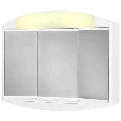 Der Spiegelschrank Elda von Jokey ist durch seinen Kunststoff-Korpus besonders widerstandsfähig gegen Feuchtigkeit. Seine harmonische Optik wird mit einer durchdachten Ausstattung mit drei Kristallglas-Spiegeltüren, Schubkasten, verstellbaren Schrankeinlagen, einem Innenspiegel sowie einer integrierten Elektrobox mit Steckdose und Schalter komplettiert. Made in Germany.