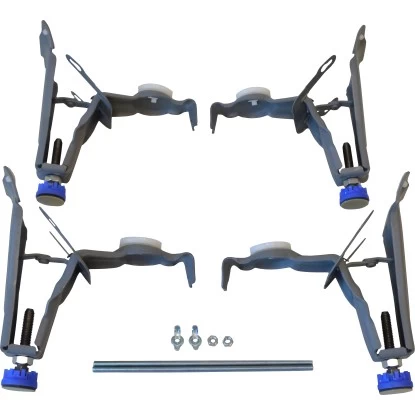 Das Set besteht aus zwei Paar höhenverstellbarer Schraubfüße, die in nur vier Schritten montiert werden können. In Kombination mit einem Kaldewei Schalldämmset (separat erhältlich) für Badewannen besitzen die Paare eine Schalldämmung und ermöglichen das weitgehend geräuschlose Baden. Für die Montage ist zusätzlich ein Wannenanker (separat erhältlich) vonnöten.