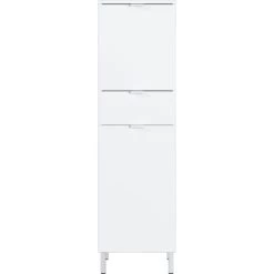 Übersichtliche Auswahl, praktische Handhabung, schnelle Lieferung – dafür steht die Serie 4010. Das Modell 4010 erweist sich dabei als besonders gefällig. Der leicht gewölbte Waschtischunterschrank verleiht, zusammen mit dem großzügigen Keramik-Waschtisch, dem Badezimmer eine sinnliche Anmutung. Individuelle Konstellationen ergeben sich in Kombination mit den passenden Wandschränken, die unkompliziert aus der Übersicht gewählt werden können. Die Möbel sind mit einer hochwertigen und Pflegeleichten Folie überzogen. Innen ist Ihr Badmöbel-Set mit weißem Melamin beschichtet: Ideal für eine schnelle Reinigung und weniger Feuchtigkeitsanfällig. Die glänzenden Bügelgriffe in Chrom komplettieren das Gesamtbild harmonisch. Dabei überzeugt die Linie mit funktionalem Nutzen und hoher Qualität.