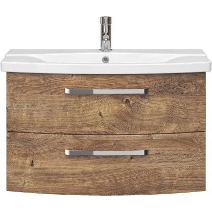 Der Pelipal Waschbeckenunterschrank in der ansprechenden Farbe Eiche Ribbeck überzeugt gleichermaßen mit Funktionalität und Optik.