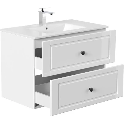 Badmöbel Waschtisch Unterschrank, 2 Schubladen mit Softclose (B/H/T) 81/59/46 cm.