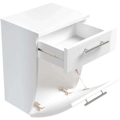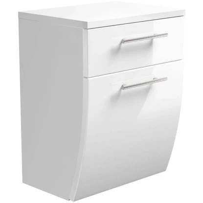 Das Badprogramm Salona überzeugt durch einen leicht geschwungenen Unterbau, sowie durch hochwertige Hochglanz MDF-Fronten.