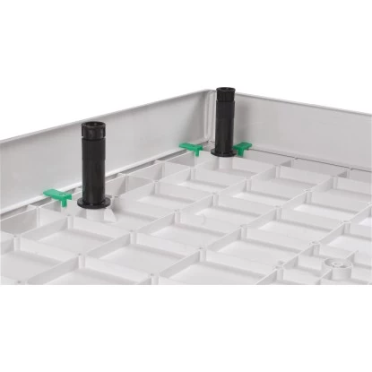 Die Sanotechnik Brausetassenfüße und Clips sind eigens für die Sanotechnik SMC Eckbrausetassen SC1690S und SC1776S hergestellt. Sie bestechen besonders durch ihre leichte Montage. Praktisch ist ebenfalls, dass sie von 9 bis auf 12 cm höhenverstellbar sind.