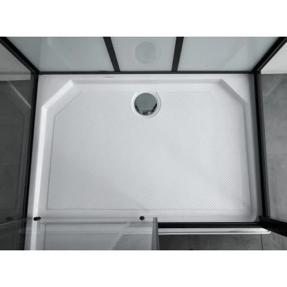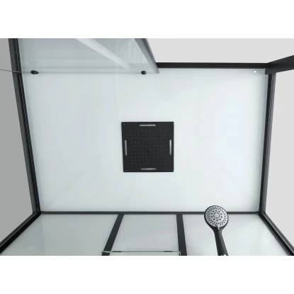 Die moderne Sanotechnik Komplettduschkabine Sky 3 CL75 überzeugt durch das ausgefallene Design im Schwarz-Weiß Look und ist ein absoluter Blickfang in Ihrem Badezimmer. Ein optisches Highlight ist vor allem das edle Glasdach der Duschkabine. Diese Dusche ermöglicht ein unvergessliches Duscherlebnis und lässt Sie Ihre Alltagssorgen vergessen. Die großflächigen Massagedüsen sorgen für die ideale Entspannung nach einem stressigen Tag. Zudem ist die Dusche mit einer Überkopfbrause sowie mit einer verstellbaren Handbrause mit 3 Funktionen ausgestattet. Mit Hilfe des Einhebelmischers können Sie bequem zwischen den beiden Brausen umschalten. Auf der integrierten Glasablage ist außerdem Platz für Ihre Duschutensilien. Dank des Quick Line Montagesystems wird ein schneller und leichter Aufbau der Duschkabine garantiert.