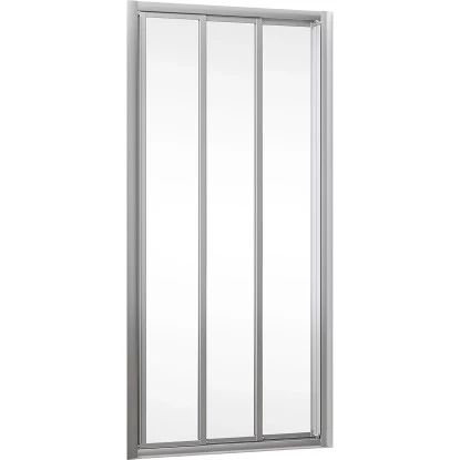 Die dreiteilige Duschtür wird flexibel und platzsparend zur Seite geschoben, sodass sich die Duschkabine auch wunderbar für kleine Bäder eignet.