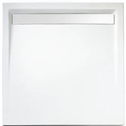 Die extraflache Duschwanne mit Rinne hat die Maße 90 cm x 90 cm und ist Alpinweiß. Die Rinnenabdeckung hat die Farbe Chromoptik. Die Breite der Rinnenabdeckung beträgt 7 cm.