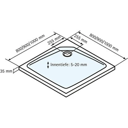 Die extraflache quadratische Duschwanne hat die Maße 90 cm x 90 cm und ist Alpinweiß.