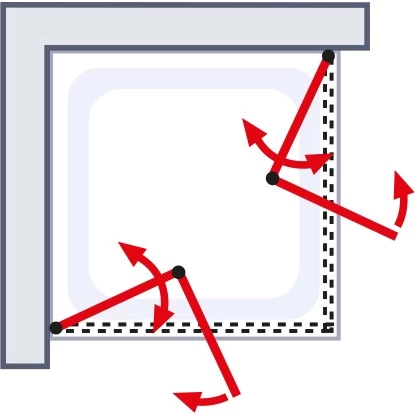 Die Drehfalttür des Eckeinstiegs ermöglicht Ihnen einen komfortablen Einstieg in Ihre Dusche ohne beim Öffnen viel Platz zu benötigen. Mit ihrer Einstiegsbreite von 109,5 cm schaffen Sie bei ebenerdiger Montage ein ideales, barrierefreies Duscherlebnis. Ausgestattet mit speziellen Puffergriffen bieten die Türen einen sanften Anschlag, selbst an hektischen Morgen.
