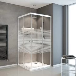 Schulte Eckeinstieg Mit Schiebetüren Sunny 180 Cm X 75-90 Cm Weiß Glasdekor