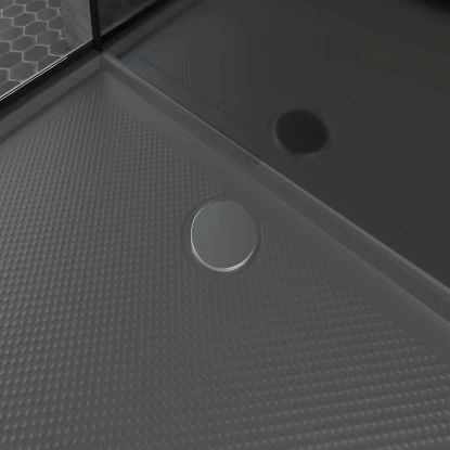 – Die silbergraue Duschwanne rundet den eleganten Look der Komplettduschkabine ab.