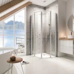 Schulte Rundduschen der Serie Garant überzeugen durch ihre eleganten Profiloptik mit rahmenlosem Echtglas. Der hervorgehobene Türrahmen brilliert mit seinem Alu-Natur Design und macht diese Duschkabine zum Highlight in Ihrem Badezimmer. Die beiden Türen öffnen nach Innen und Außen. So bieten sie eine großzügige Einstiegsbreite von 69 cm und bleiben dabei dennoch platzsparend. Lassen Sie sich von der Größe Ihres Bades nicht von einem qualitativ hochwertigen Duscherlebnis abhalten.