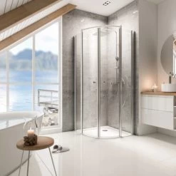 Schulte Rundduschen der Serie Garant überzeugen durch ihr elegantes Profil mit rahmenlosem Echtglas. Der hervorgehobene Türrahmen brilliert mit seiner Chrom-Optik und macht diese Duschkabine zum Highlight in Ihrem Badezimmer. Die beiden Türen öffnen nach Innen und Außen. So bieten sie eine großzügige Einstiegsbreite von 69 cm und bleiben dabei dennoch platzsparend. Lassen Sie sich von der Größe Ihres Bades nicht von einem qualitativ hochwertigen Duscherlebnis abhalten.