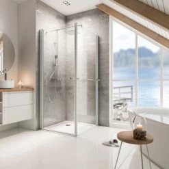 Die Schulte Duschkabine mit Drehtür Garant punktet mit dem zeitlosen Design, welches durch zwei hochwertige Aluminiumprofile dominiert wird. Dieses verleiht jedem Bad einen besonderen Charme. Darüber hinaus kann die brillante Glasfläche der Tür dank ihrer eleganten Teilrahmung optimal auf ihre Umgebung wirken und so auch kleine Bäder größer erscheinen lassen.
