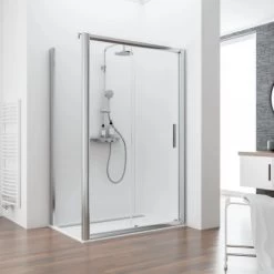 Die Schulte Seitenwand für Schiebetür 2-teilig Kristall/Trend kann mit der Schulte Schiebetür 2-teilig ohne unteres Profil eingebaut werden.