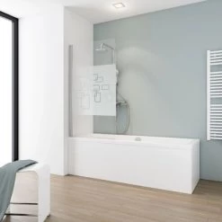 Der einteilige Schulte Badewannenaufsatz dient dazu, die Duscheinheit optisch von der Badewanne zu trennen und sie somit komfortabel in eine Duschkabine umzuwandeln. Der Aufsatz hat die Maße 140 cm x 80 cm. Er besteht aus klarem 5-mm-starkem Einscheiben-Sicherheitsglas und einem Profil in Chrom-Optik. Das auf dem Glas angebrachte Softcube-Design dient zur Dekoration und bietet gleichzeitig Sichtschutz. Das Glaselement ist beidseitig innen und außen je 90° schwenkbar, wodurch es besonders platzsparend ist. Standardmäßig ist der Badewannenaufsatz für die Montage links vorgesehen. Bei der Montage rechts befindet sich das Dekor auf der Innenseite.