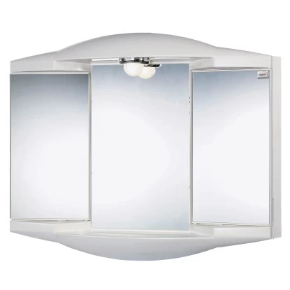 Der Spiegelschrank Chico GL der Marke Sieper ist durch seinen Kunststoff-Korpus besonders widerstandsfähig gegen Feuchtigkeit. Für ein dynamisches wie harmonisches Gesamtbild sorgen eine schwungvolle Linienführung, zwei Spiegeltüren aus Kristallglas und ein fester Mittelspiegel mit Ablagefläche. Im Inneren fügen sich Steckdose und Schalter nahtlos in das Design ein. Hergestellt in Germany.