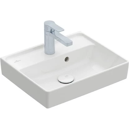 Mit der Serie Collaro von Villeroy & Boch wirkt das Waschbecken mit und ohne das passende Möbelstück sehr edel. Auch wenn diese Keramik kompakt ist fällt sie sofort auf. Dank der eckigen Form ist die Ablagefläche sehr vorteilhaft. Das Material TitanCeram sorgt für eine Langlebigkeit.