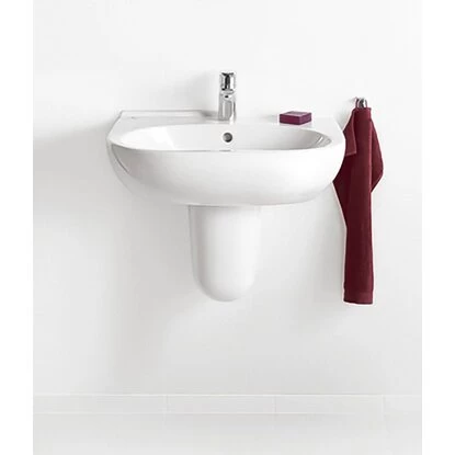 Durch seine runde, minimalistische Form ist das Handwaschbecken besonders platzsparend und macht sich daher gut in kleineren Badezimmern oder Gästezimmern. Seine unauffällige Eleganz passt sich jeder Stilrichtung an und lässt sich mit Ihrer Deko kombinieren.