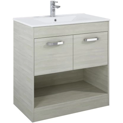 Der Waschbeckenunterschrank Zen ist ein schlicht gehaltener Schrank, der in vier attraktiven Dekoren erhältlich ist. Durch sein klassisches Design und die ansprechende Optik ist er eine formschöne Ergänzung in jedem Bad. Zen besitzt zwei Schranktüren, ein Abstelfach und verchromte Metallgriffe, die das Gesamtbild abrunden. Er ist zur einfachen Selbstmontage geeignet und mit dem ebenfalls erhältlichen, nicht im Lieferumfang enthaltenen Waschbecken und Spiegel, schaffen Sie einen harmonischen Gesamteindruck in Ihrem Bad.